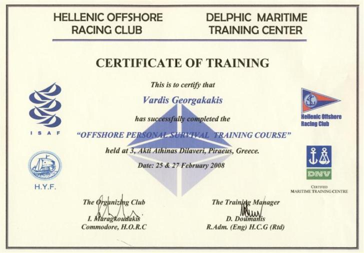 Αργότερα παρακολούθησε σεμινάριο με θέμα την ‘Ασφάλεια στη θάλασσα’ και πολύ πρόσφατα για τις 'Ναυτικές επικοινωνίες (VHF)'. Έχει συχνά ταξιδέψει στις περισσότερες ευρωπαϊκές χώρες και μια φορά στις ΗΠΑ. Ο Βαρδής είναι κυβερνήτης του σκάφους 'ATLANTIS 43'.